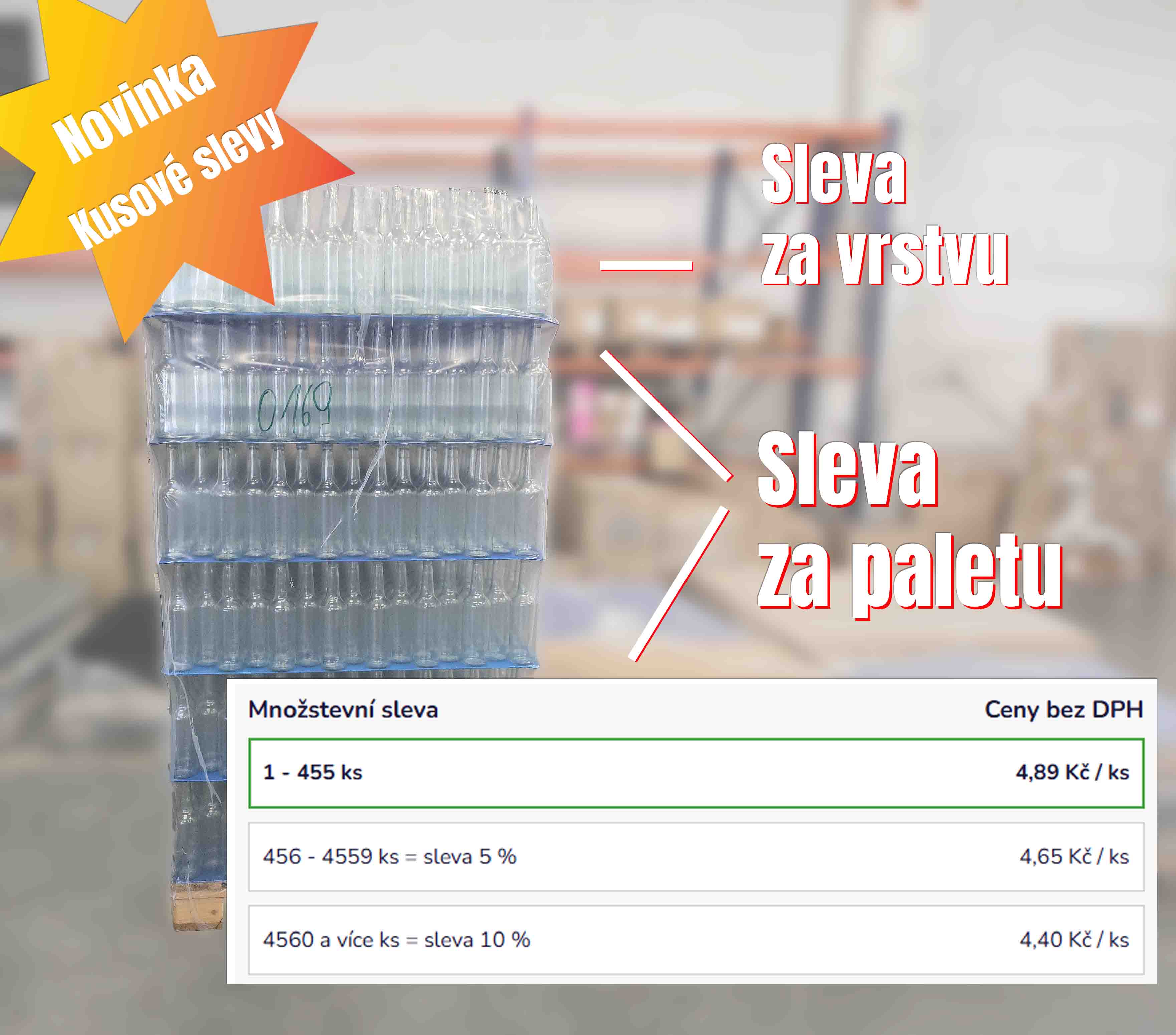 Nyní můžete od nás získat vrstvu lahví nebo sklenic levněji a celou paletu ještě levněji.