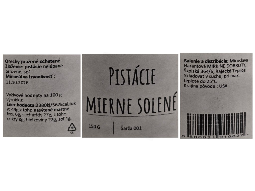 Pistácie mírne solené 150g - Mirkine dobroty