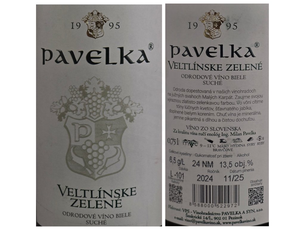 Víno Veltlínske zelené 0.75 l - suché jakostní - VPS